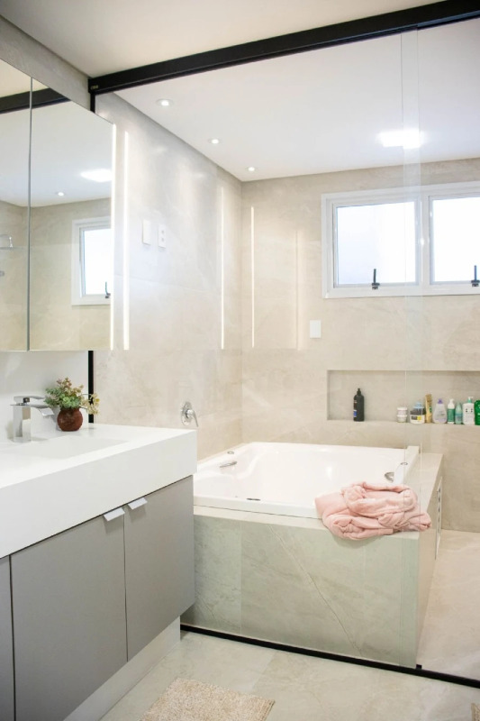 Suítes Premium: 3 suítes completas, incluindo uma master com hidromassagem para seus momentos de relaxamento.
