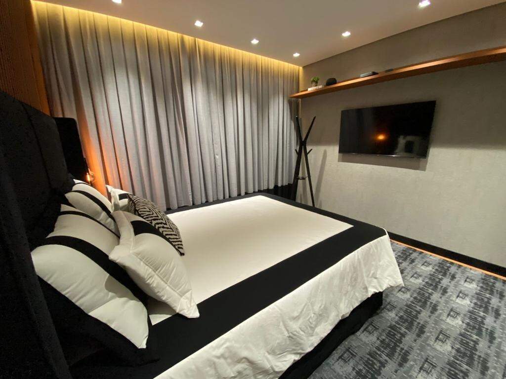 Além disso o condomínio conta com estrutura ampla, vagas de visitantes, piscina fria e piscina aquecida com raia, academia, restaurante, mini mercado interno, sala de jogos, sala de cinema, sala de massagem e SPA, sauna, pet place, lavanderia, portaria 24hs, bicicletário